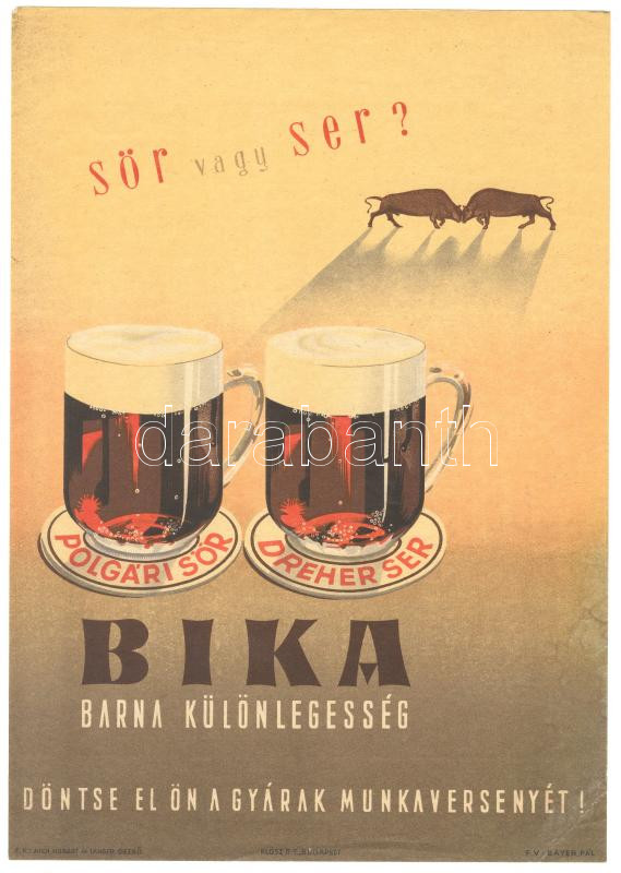cca 1940 Dreher-Polgári Bika sör kisplakát 17x24 cm https://www.darabanth.com/de/174-Fernauktion/174.0/Andere-Sammelgebiete/Werbungen~2200025/cca-1940-Dreher-Polgari-Bika-sor-kisplakat-17x24-cm~II596797
