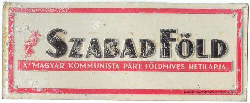 Beschreibung: cca 1960 "Szabadföld-A Magyar Kommunista Párt földmíves hetilapja" fémtábla 25x10cm