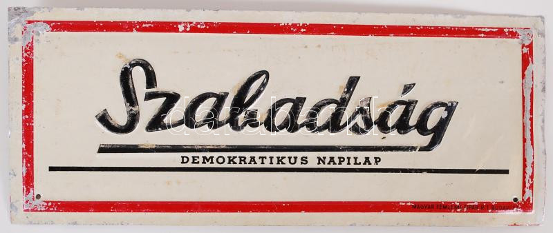cca 1960 "Szabadság- Demokratikus napilap" fémtábla 25x10cm https://www.darabanth.com/de/174-Fernauktion/174.0/Andere-Sammelgebiete/Werbungen~2200025/cca-1960-Szabadsag-Demokratikus-napilap-femtabla-25x10cm~II598918