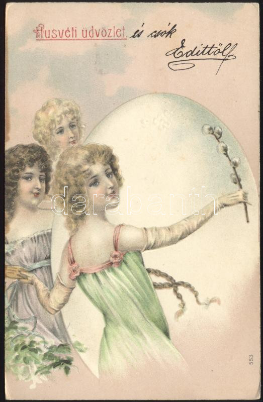 Easter, ladies Emb. litho (fl) https://www.darabanth.com/de/174-Fernauktion/174.0/Ansichtskarten/GruC39Fkarte~2200123/Easter-ladies-Emb-litho-fl~II596053