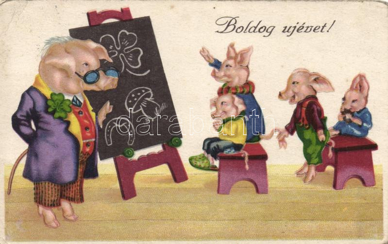 New Year, pig school litho (EK) https://www.darabanth.com/de/174-Fernauktion/174.0/Ansichtskarten/GruC39Fkarte~2200123/New-Year-pig-school-litho-EK~II600314