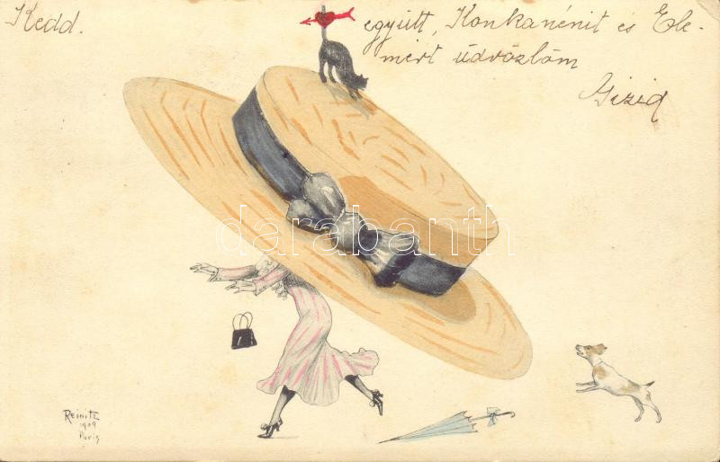 A dog chases a cat s: Reinitz (EK) https://www.darabanth.com/de/174-Fernauktion/174.0/Ansichtskarten/Humor~2200100/A-dog-chases-a-cat-s-Reinitz-EK~II596640