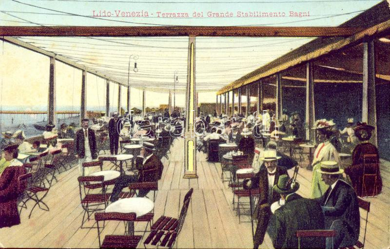 Venice Lido, terrace of Grande Stabilimento beach https://www.darabanth.com/de/174-Fernauktion/174.0/Ansichtskarten/Italien~2200071/Venice-Lido-terrace-of-Grande-Stabilimento-beach~II595779