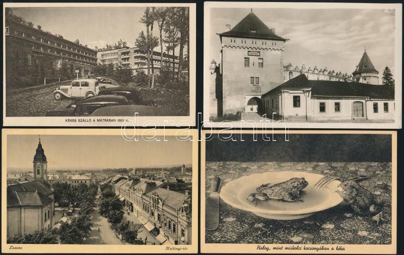 Beschreibung: 16 db régi, főként használatlan, többnyire magyarországi és két felvidéki városképes lap, valamint a híres miskolci kocsonya békákkal