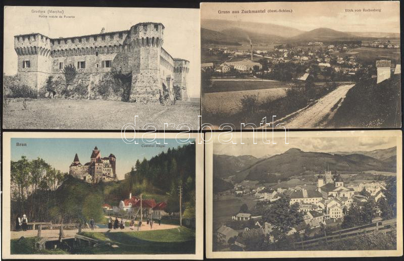 Beschreibung: 17 db régi, külföldi városképes lap, köztük kettő a történelmi Magyarország területéről