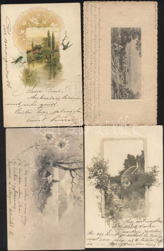 Beschreibung: 4 db háború előtti, tájképes művészlap, köztük egy litho