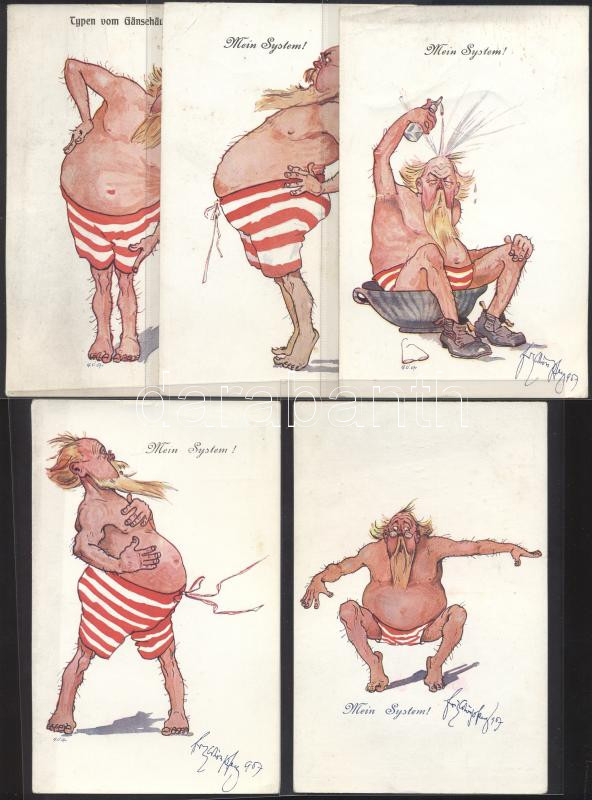 5 db humoros művészlap, pinx. Schönpflug 907-es sorozat, "Az én rendsz... https://www.darabanth.com/de/174-Fernauktion/174.0/Ansichtskarten/Postkartensammlungen-Lose~2200043/5-db-humoros-muveszlap-pinx-Schonpflug-907-es-sorozat-Az-en-rendszerem-non-pc~II599819