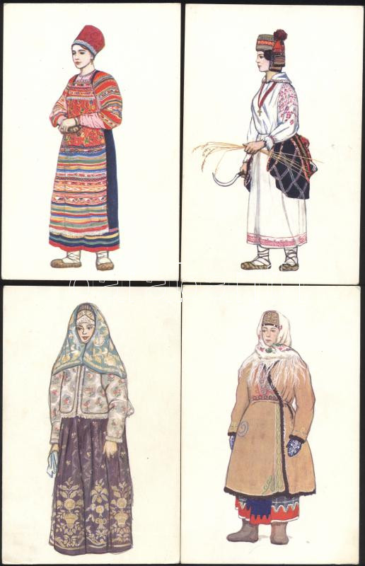 9 db régi, használatlan orosz folklórlap, női viseleteket bemutató sor... https://www.darabanth.com/de/174-Fernauktion/174.0/Ansichtskarten/Postkartensammlungen-Lose~2200043/9-db-regi-hasznalatlan-orosz-folklorlap-noi-viseleteket-bemutato-sorozat~II600759