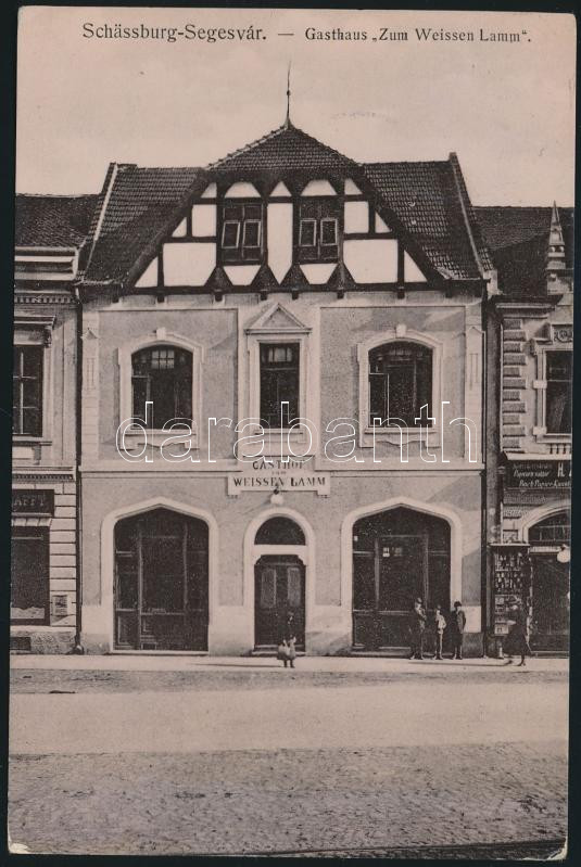 Segesvár Restaurant Weissen Lamm https://www.darabanth.com/de/174-Fernauktion/174.0/Ansichtskarten/Siebenburgen~2200042/Segesvar-Restaurant-Weissen-Lamm~II599082