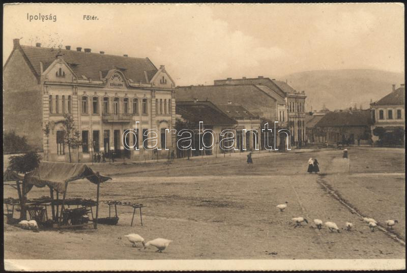 Ipolyság main square, Hotel Lengyel https://www.darabanth.com/de/174-Fernauktion/174.0/Ansichtskarten/Slowakei~100006/Ipolysag-main-square-Hotel-Lengyel~II599124