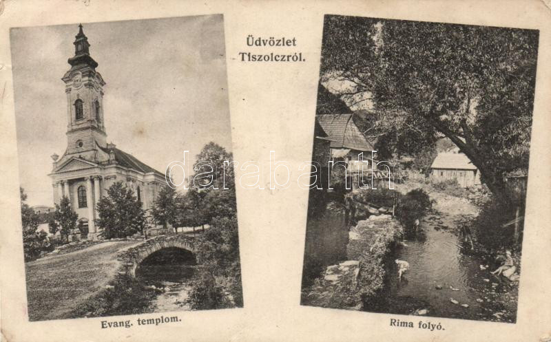 Tiszolc Evangelist church, Rima river (small tear) https://www.darabanth.com/de/174-Fernauktion/174.0/Ansichtskarten/Slowakei~100006/Tiszolc-Evangelist-church-Rima-river-small-tear~II599843