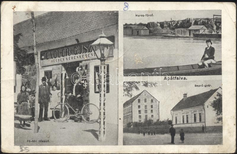 Beschreibung: Apátfalva seprőgyár, Fendler Gusztáv vegyeskereskedése (Rb)