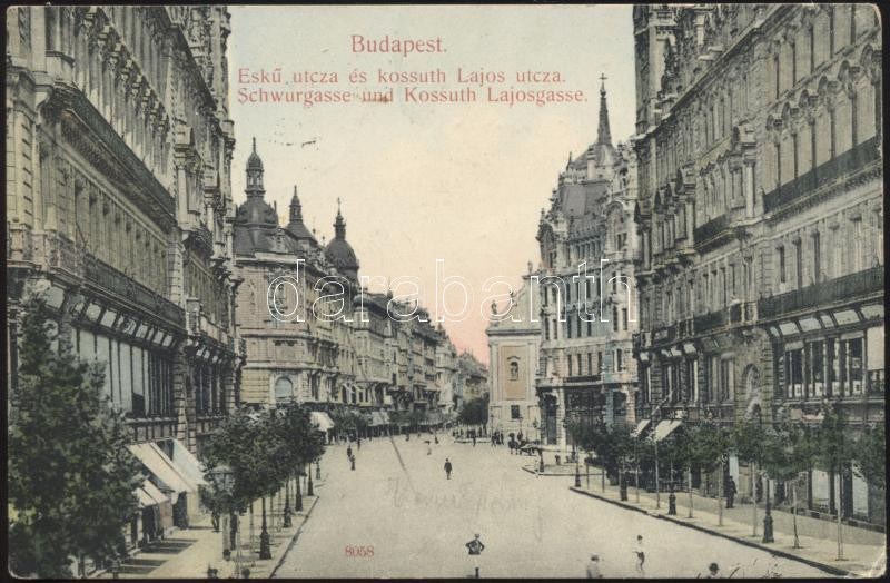 Budapest V. Eskü és Kossuth Lajos utca (EK) https://www.darabanth.com/de/174-Fernauktion/174.0/Ansichtskarten/Ungarn~100005/Budapest-V-Esku-es-Kossuth-Lajos-utca-EK~II598144