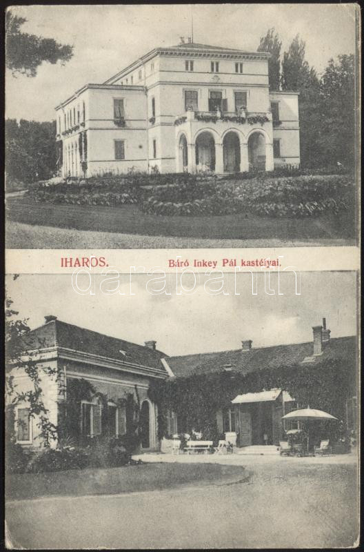 Iharos Báró Inkey Pál kastélyai https://www.darabanth.com/de/174-Fernauktion/174.0/Ansichtskarten/Ungarn~100005/Iharos-Baro-Inkey-Pal-kastelyai~II598260