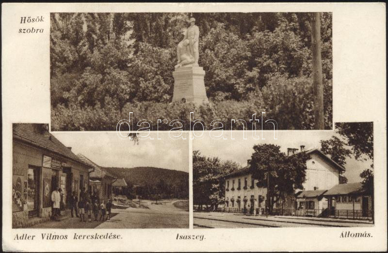 Isaszeg Adler Vilmos kereskedése, vasútállomás https://www.darabanth.com/de/174-Fernauktion/174.0/Ansichtskarten/Ungarn~100005/Isaszeg-Adler-Vilmos-kereskedese-vasutallomas~II598258
