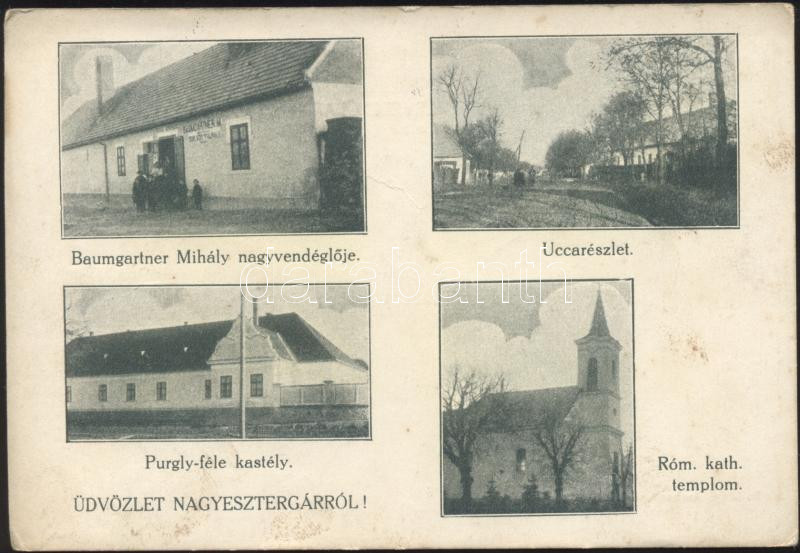 Nagyesztergár Baumgartner Mihály nagyvendéglője, Purgly-kastély (fl) https://www.darabanth.com/de/174-Fernauktion/174.0/Ansichtskarten/Ungarn~100005/Nagyesztergar-Baumgartner-Mihaly-nagyvendegloje-Purgly-kastely-fl~II598059