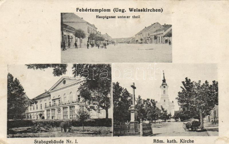 Fehértemplom Main street, church (EK) https://www.darabanth.com/de/174-Fernauktion/174.0/Ansichtskarten/Vojvodina~100009/Fehertemplom-Main-street-church-EK~II599171