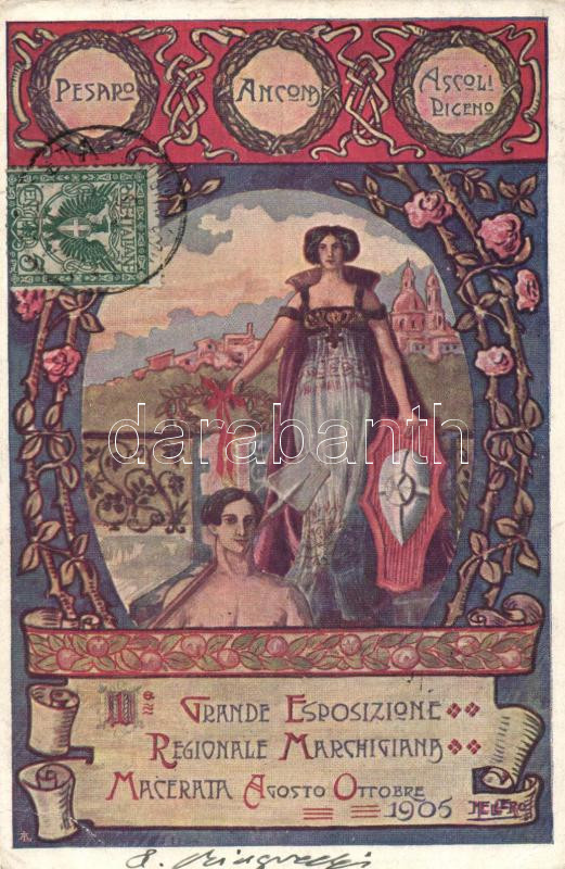 Macerata Grand Expo 1905, artist signed (EB) https://www.darabanth.com/de/174-Fernauktion/174.0/Ansichtskarten/Werbungen~2200114/Macerata-Grand-Expo-1905-artist-signed-EB~II600290
