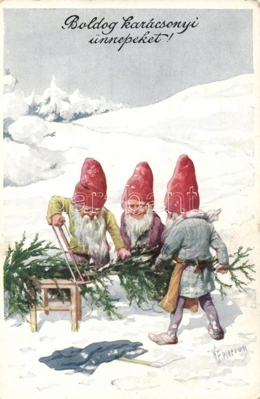 Christmas, dwarf, artist signed https://www.darabanth.com/de/174-Fernauktion/174.0/Ansichtskarten/Zwerge~2200129/Christmas-dwarf-artist-signed~II601622