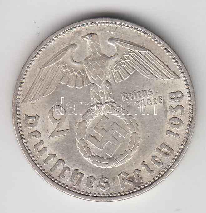 German Third Reich 19... https://www.darabanth.com/de/174-Fernauktion/174.0/Numismatik/Auslandische-Munzen~2200145/Nemet-3-Birodalom-1938E-2M-Ag-Hindenburg-T2--3Cbr3EGerman-Third-Reich-1938E-2-Marks-Ag-Hindenbu~II595636