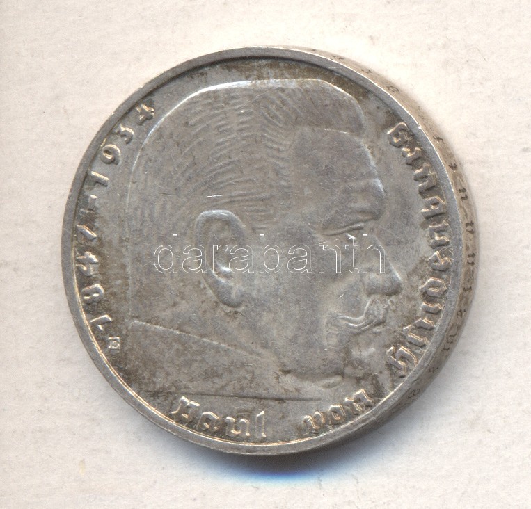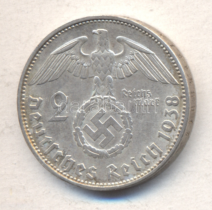 German Third Reich 193... https://www.darabanth.com/de/174-Fernauktion/174.0/Numismatik/Auslandische-Munzen~2200145/Nemet-3-Birodalom-1938E-2M-Ag-Hindenburg-T2-3Cbr3EGerman-Third-Reich-1938E-2-Marks-Ag-Hindenbur~II597587