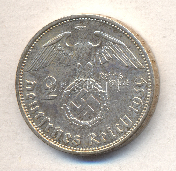 German Third Reich 193... https://www.darabanth.com/de/174-Fernauktion/174.0/Numismatik/Auslandische-Munzen~2200145/Nemet-3-Birodalom-1939A-2M-Ag-Hindenburg-T2-3Cbr3EGerman-Third-Reich-1939A-2-Marks-Ag-Hindenbur~II597594