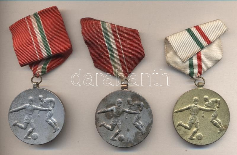 ~1960. 3db különféle labdarúgó díjérem szalaggal T:2