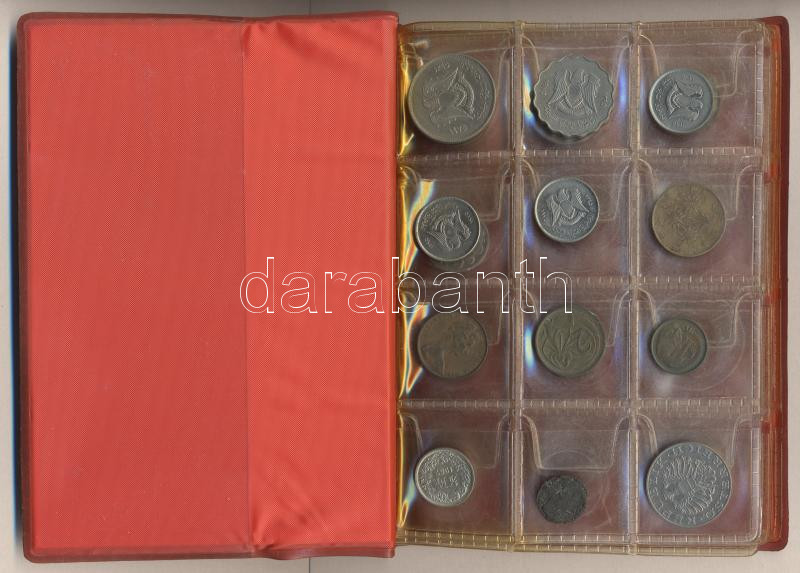 Beschreibung: 2db éremtartó album összesen 27db vegyes pénzérmével