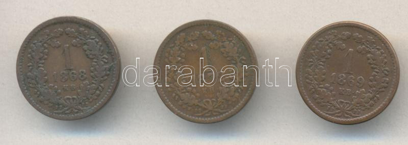 1868KB 1Kr + 1869KB 1Kr + 1872KB 1Kr T:2-,3 https://www.darabanth.com/de/174-Fernauktion/174.0/Numismatik/Ungarische-Munzen~2200141/1868KB-1Kr-plus-1869KB-1Kr-plus-1872KB-1Kr-T2-3~II596773