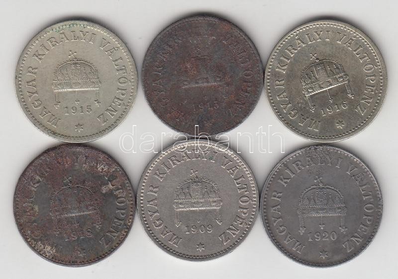 1909-1920. 10f (5x) klf + 1915-16. 10f Alpakka (2x) T:2,2- https://www.darabanth.com/de/174-Fernauktion/174.0/Numismatik/Ungarische-Munzen~2200141/1909-1920-10f-5x-klf-plus-1915-16-10f-Alpakka-2x-T2-2-~II601175