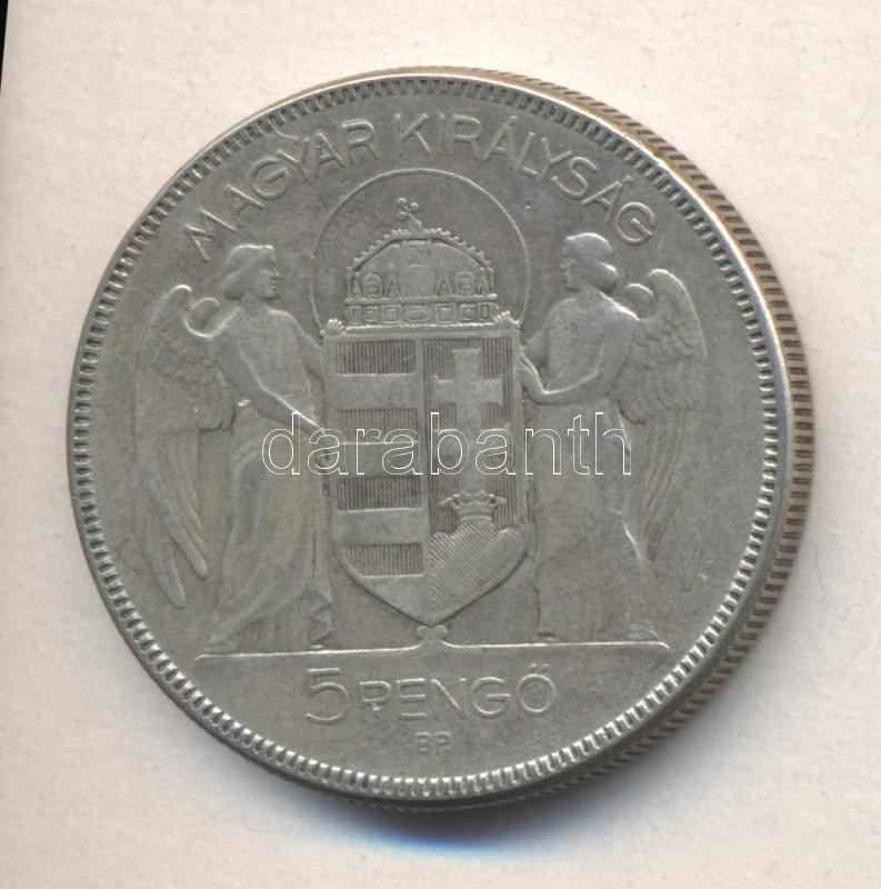1930. 5P Ag "Horthy-jobbra" T:3 https://www.darabanth.com/de/174-Fernauktion/174.0/Numismatik/Ungarische-Munzen~2200141/1930-5P-Ag-Horthy-jobbra-T3~II597378