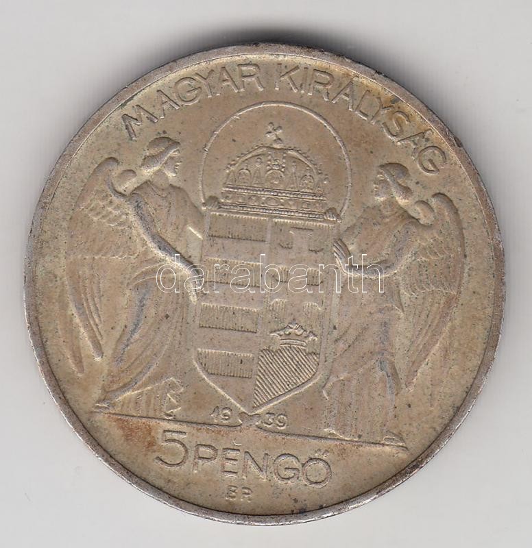 1939. 5P Ag "Horthy - balra" T:2- https://www.darabanth.com/de/174-Fernauktion/174.0/Numismatik/Ungarische-Munzen~2200141/1939-5P-Ag-Horthy--balra-T2-~II602007