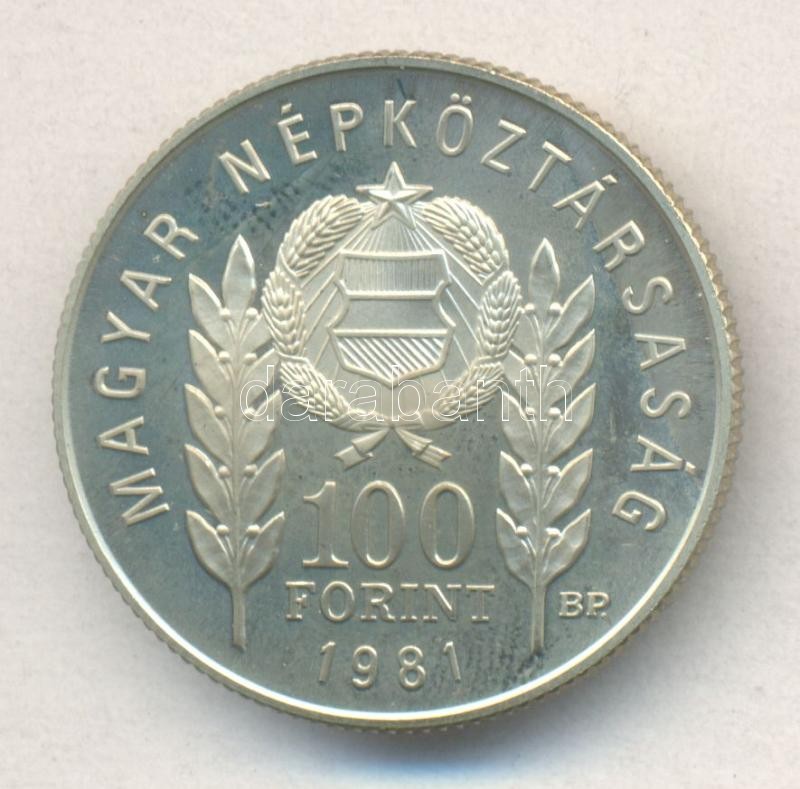 1981. 100Ft "Bulgária 1300 éves" T:PP Műbőrtokban https://www.darabanth.com/de/174-Fernauktion/174.0/Numismatik/Ungarische-Munzen~2200141/1981-100Ft-Bulgaria-1300-eves-TPP-Mubortokban~II595464