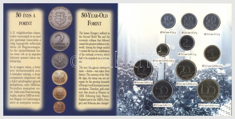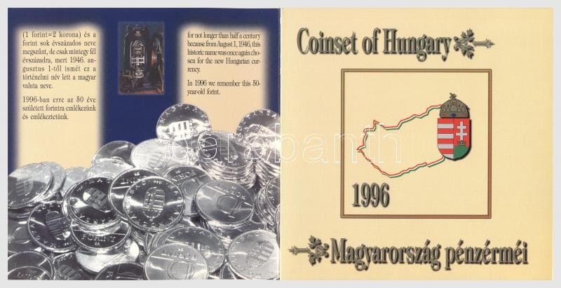 1996. 10f-100Ft 10klf db "50 éves a forint" dísztokos szettben T:BU Cs... https://www.darabanth.com/de/174-Fernauktion/174.0/Numismatik/Ungarische-Munzen~2200141/1996-10f-100Ft-10klf-db-50-eves-a-forint-disztokos-szettben-TBU-Csak-7000db~II597248
