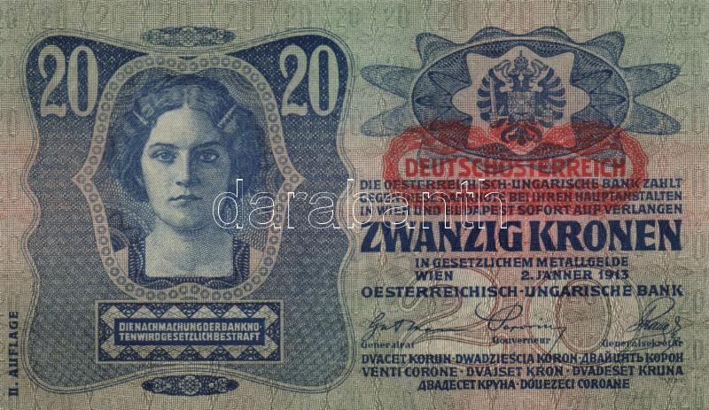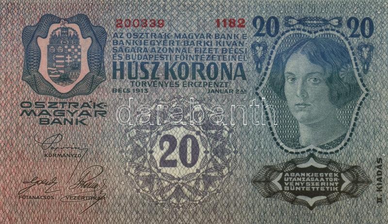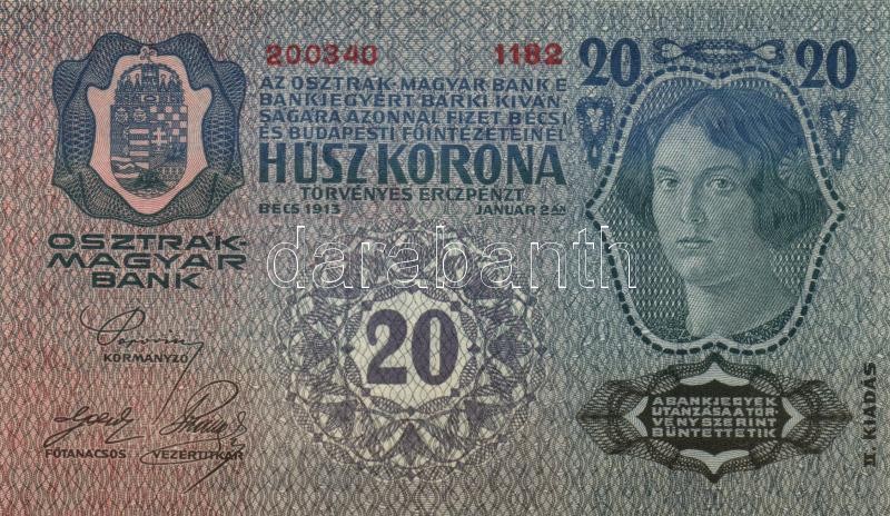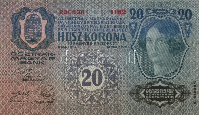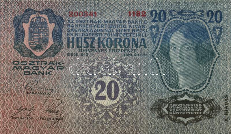 1913. 20K (4x) egymásutáni sorszámmal! T:I https://www.darabanth.com/de/174-Fernauktion/174.0/Numismatik/Ungarische-banknoten~2200140/1913-20K-4x-egymasutani-sorszammal-TI~II602016