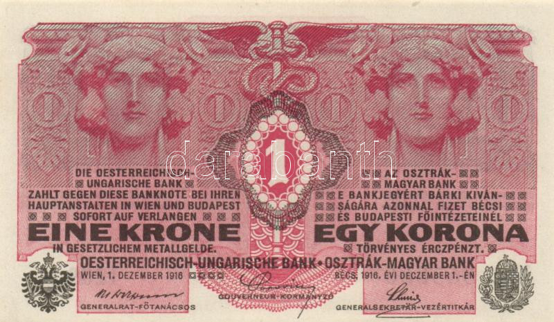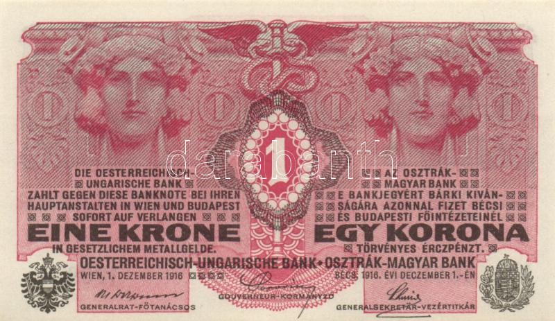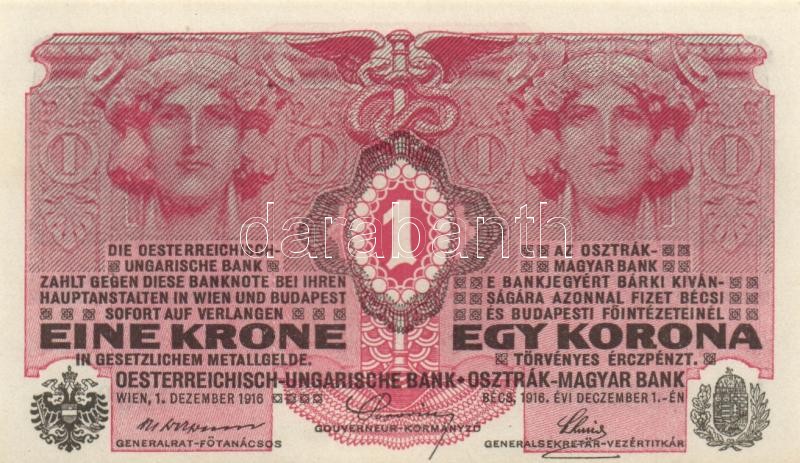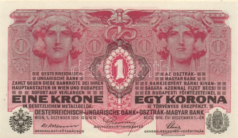 1916. 1K (4x) egymásutáni sorszámok! T:I- https://www.darabanth.com/de/174-Fernauktion/174.0/Numismatik/Ungarische-banknoten~2200140/1916-1K-4x-egymasutani-sorszamok-TI-~II602012
