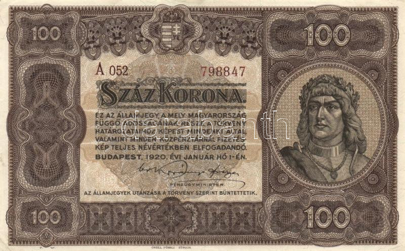 Beschreibung: 1920. 100K barna sor- és sorozatszámmal! T:II