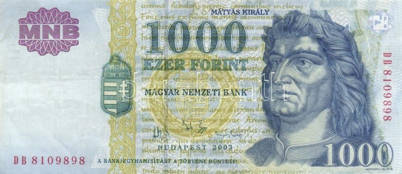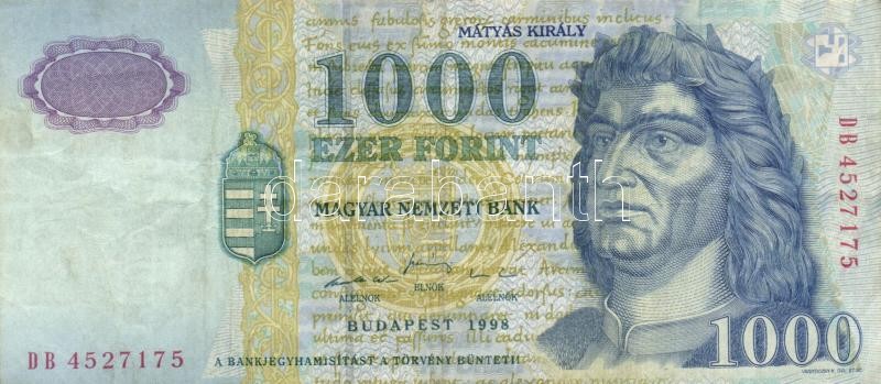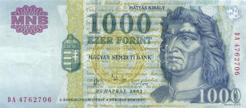 1998. 1000Ft (2x) "DA/DB" + 1999. 1000Ft "DB" + 2003. 1000Ft (2x) "DA/... https://www.darabanth.com/de/174-Fernauktion/174.0/Numismatik/Ungarische-banknoten~2200140/1998-1000Ft-2x-DADB-plus-1999-1000Ft-DB-plus-2003-1000Ft-2x-DADB-TII-III~II601661