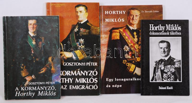 4 db Horthy Miklósról szóló könyv: Horthy Miklós dokumentumok tükrében. A kormányzó. Egy lovaguralkodó és népe. A kormányzó Horthy Miklós és az emigráció.