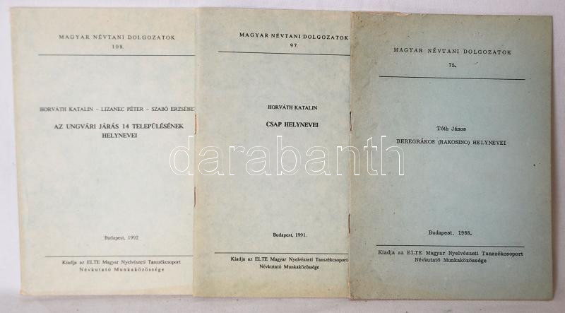 Magyar névtani dolgozatok 3 kötet: Horváth Kálmán: Csap helységnevei, Tóth János: Beregrákos helységnevei, Horváth-Lizanec-Szabó: Az ungvári járás 14 településének helynevei