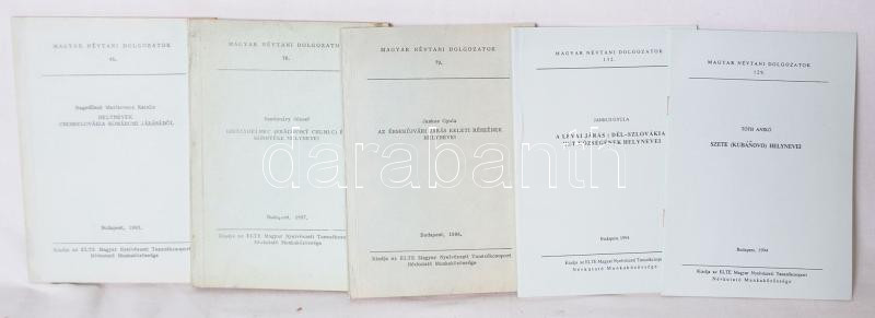 Magyar névtani dolgozatok 5 kötet a Felvidékről: Helynevek Csehszlovákia Komáromi járásából, Királyhelmec és környéke helynevei, Az érsekújvári járás keleti részének helynevei, A lévai járás hét községének helynevei, Szete helynevei