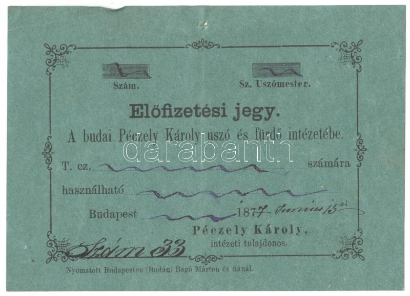 1877 a budai Péczely Károly úszó és fürdő intézet előfizetési jegye, h... https://www.darabanth.com/de/175-Fernauktion/175.0/Andere-Sammelgebiete/Dokument~1000018/1877-a-budai-Peczely-Karoly-uszo-es-furdo-intezet-elofizetesi-jegye-hatoldalt-a-tulajdon~II605831