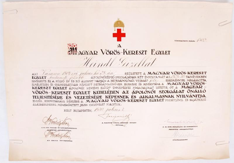 1930 Magyar Vöröskereszt Egylet díszes oklevele ápolónő részére szép á... https://www.darabanth.com/de/175-Fernauktion/175.0/Andere-Sammelgebiete/Dokument~1000018/1930-Magyar-Voroskereszt-Egylet-diszes-oklevele-apolono-reszere-szep-allapotban-Hungaria~II609043