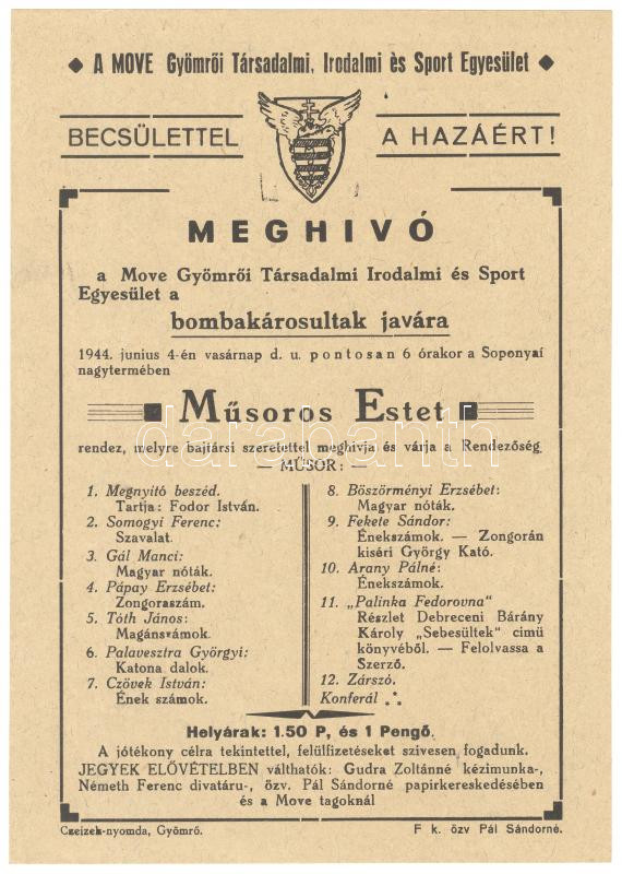1944 MOVE est a bombakárosultak javára https://www.darabanth.com/de/175-Fernauktion/175.0/Andere-Sammelgebiete/Dokument~1000018/1944-MOVE-est-a-bombakarosultak-javara~II605858