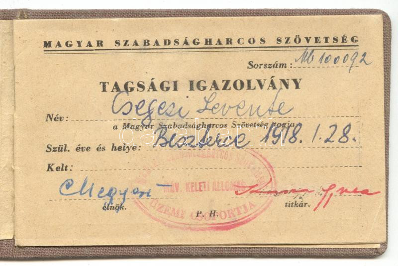 1950 Magyar Szabadságharcos Szövetség tagsági igazolvány bélyegekkel https://www.darabanth.com/de/175-Fernauktion/175.0/Andere-Sammelgebiete/Dokument~1000018/1950-Magyar-Szabadsagharcos-Szovetseg-tagsagi-igazolvany-belyegekkel~II607053