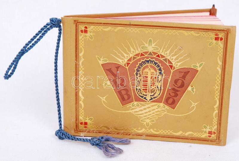 Beschreibung: 1930 Vitézi Rend Bálja jegyzetfüzet dombornyomott, aranyozott bőrkötésben, egykorú ceruzával (az első néhány lapon modern bejegyzések)