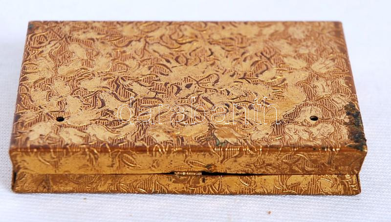 Aranyozott fém szelence, virág díszítéssel, kopott, 5×7 cm https://www.darabanth.com/de/175-Fernauktion/175.0/Andere-Sammelgebiete/Flohmarkt~1000015/Aranyozott-fem-szelence-virag-diszitessel-kopott-5C3977-cm~II606913
