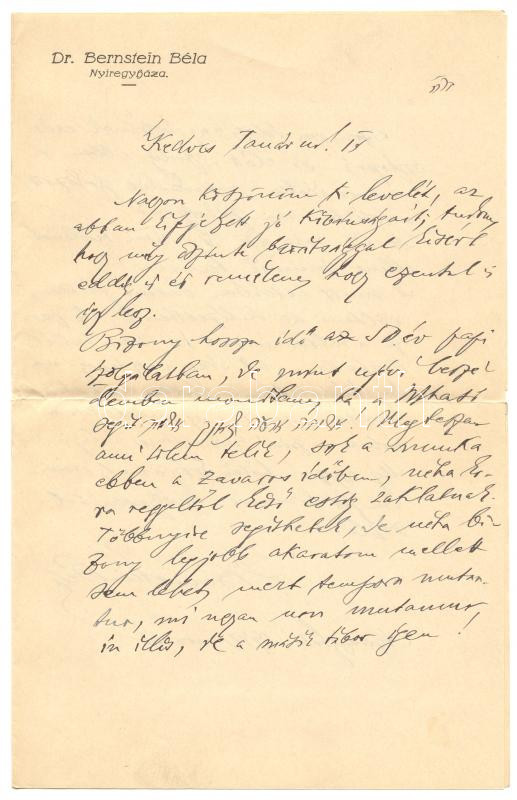 1942 Bernstein Béla főrabbi, történész Kedves Tanár Úr! megszólítású, ... https://www.darabanth.com/de/175-Fernauktion/175.0/Andere-Sammelgebiete/Judaica~1200075/1942-Bernstein-Bela-forabbi-tortenesz-Kedves-Tanar-Ur-megszolitasu-szemelyes-hangu-l~II604150
