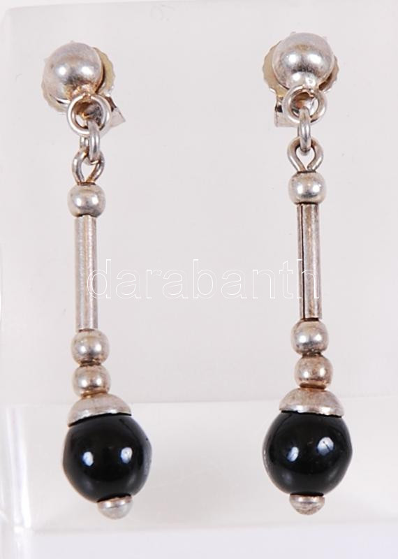 Ezüst (Ag) fülbevaló ónix gömbbel /