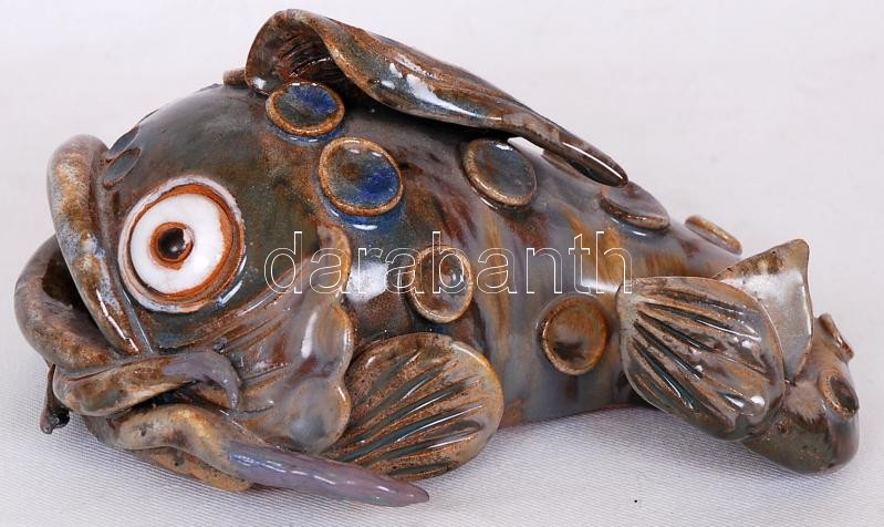 Beschreibung: Harcsát ábrázoló mázas kerámia figura, jelzés nélkül, hibátlan, h:16 cm, m:8 cm